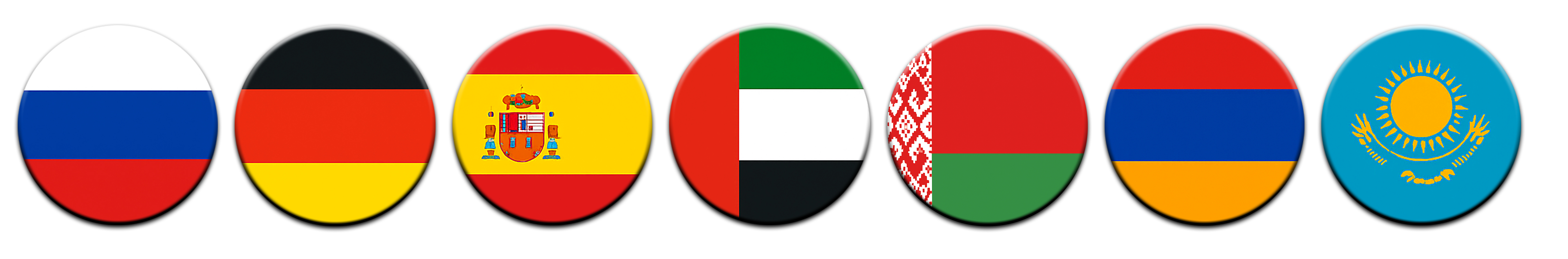 РФ, Германия, Испания, ОАЭ, Беларуссия, Армения, Казахстан