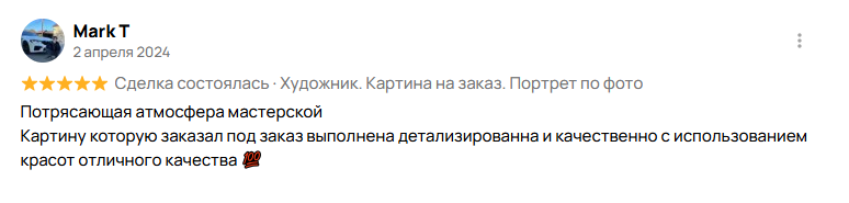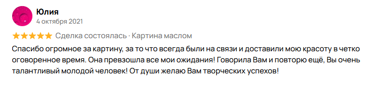 Предоплата направляется на закупку премиальных материалов: галерейного холста профессионального натяжения, высококачественных пигментов и художественных лаков, обеспечивающих глубину цвета, стойкость и долговечность картины.