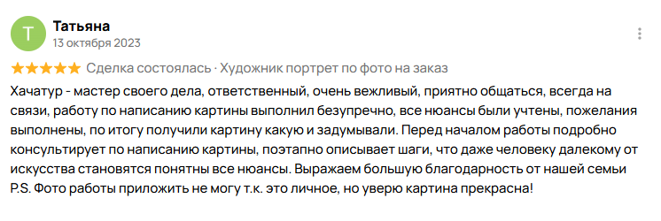 На протяжении всего процесса вы находитесь в диалоге с художником: я регулярно направляю актуальные фото этапов создания, чтобы вы могли деликатно скорректировать нюансы и наблюдать, как рождается ваше персональное произведение искусства.